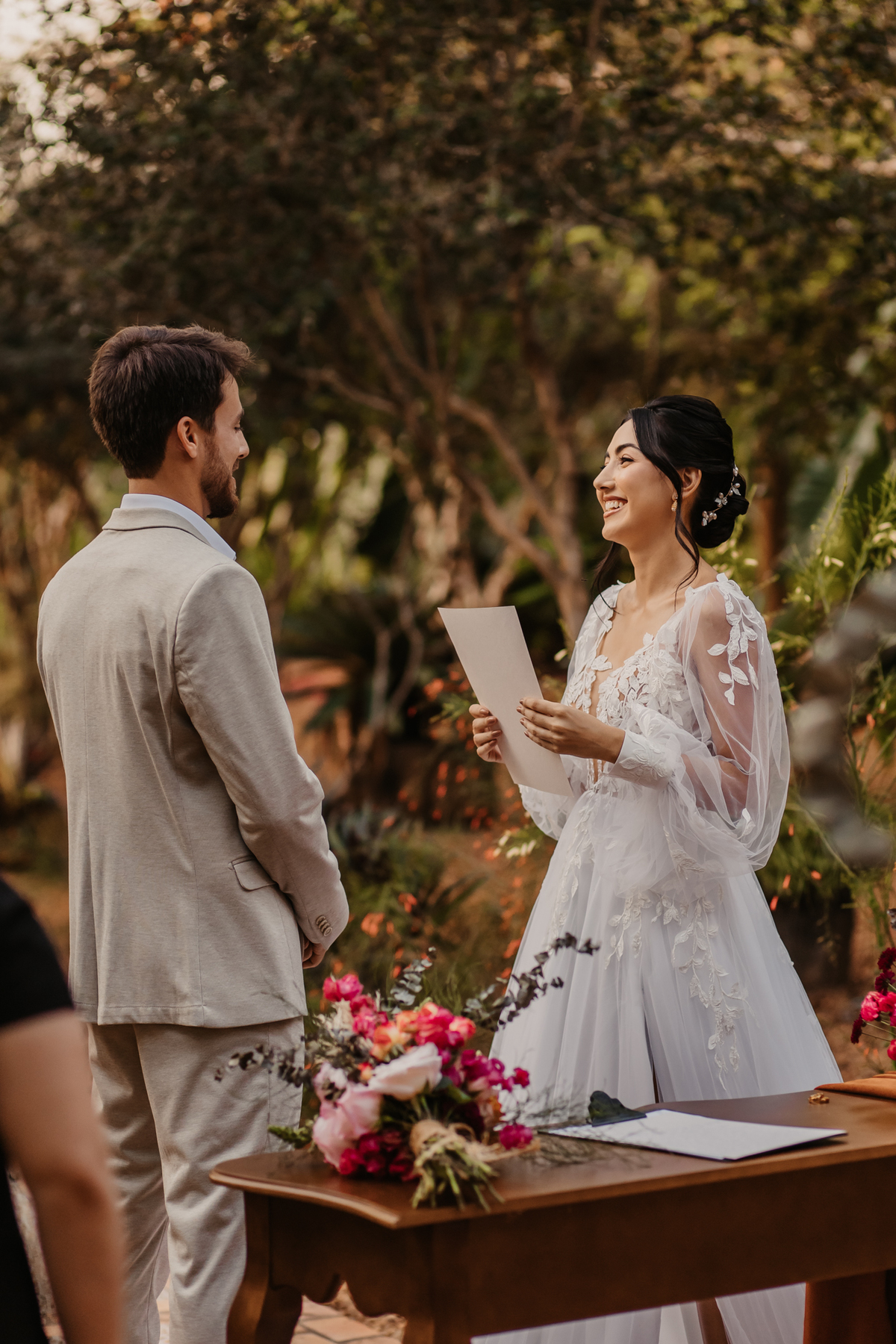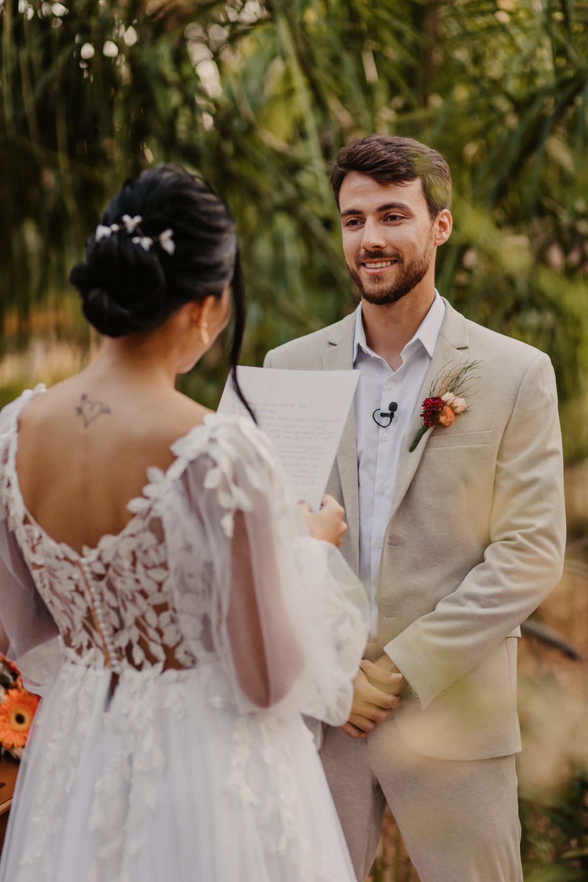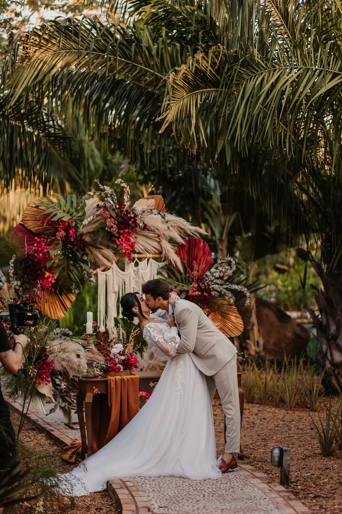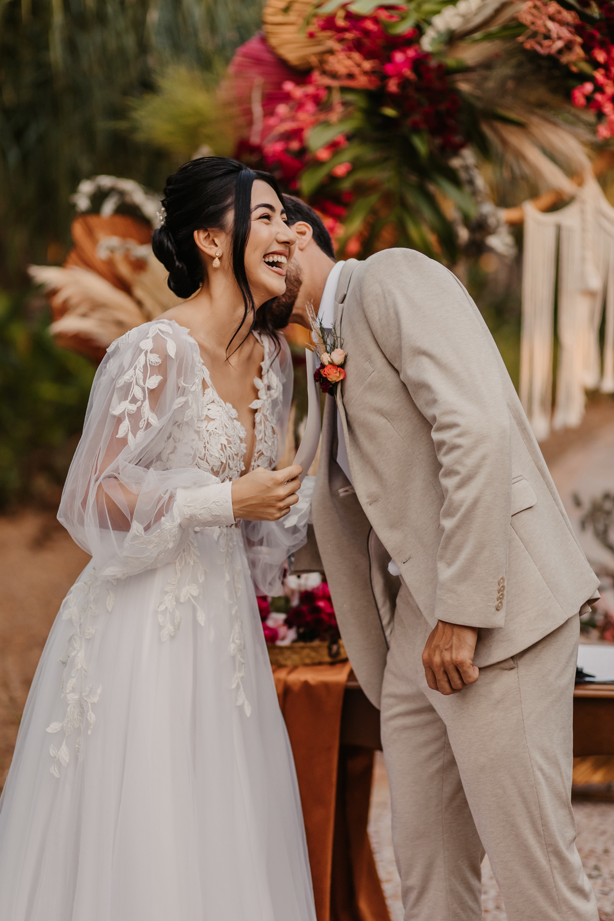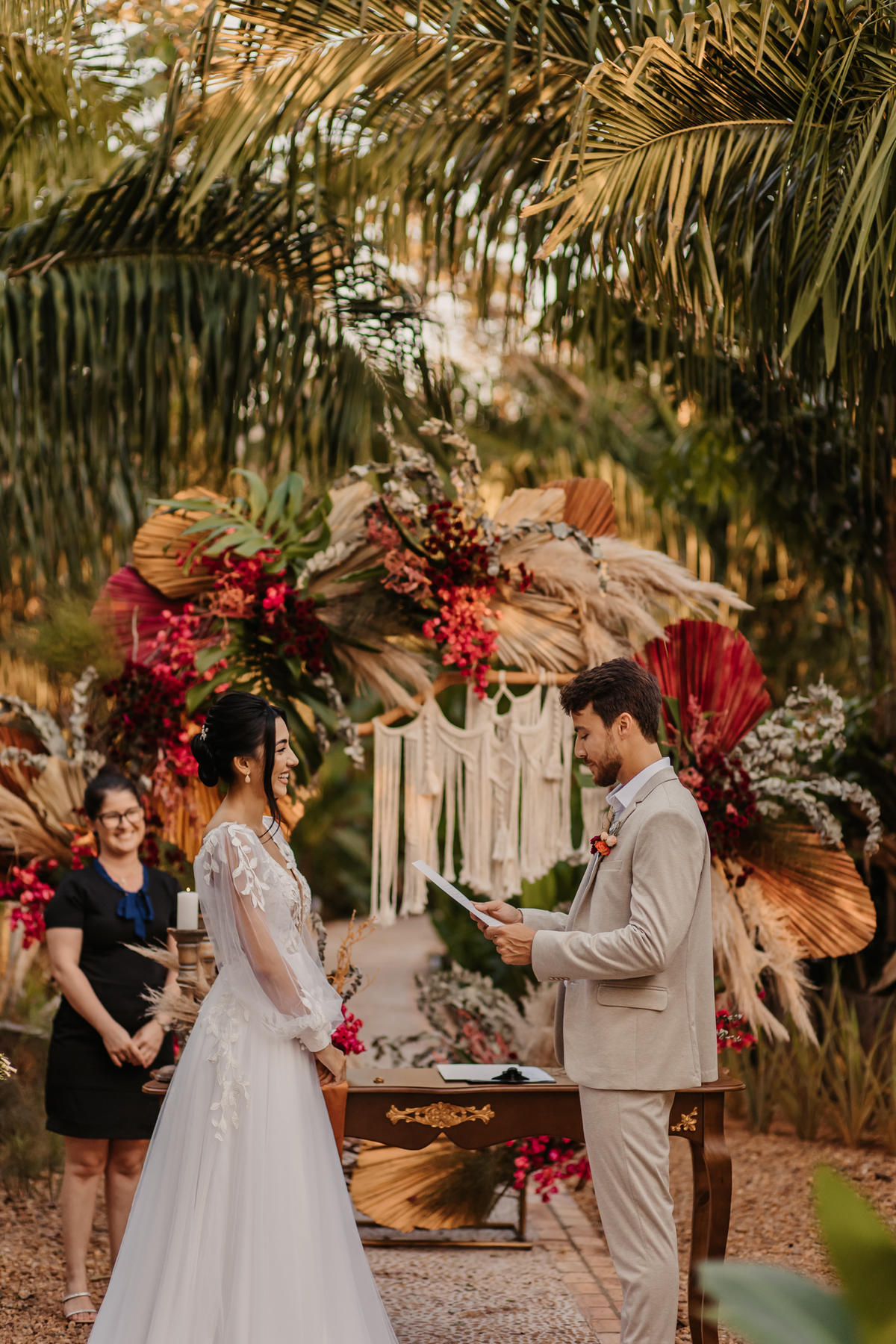 Um casamento realizada na Fazenda Anacã. Um modelo mais intimista, com muitas emoções, com direito a first look e votos. Uma cerimonia encantadora. E o incrível que foi uma proposta realizada pelos fornecedores o estilo boho. Esse estilo é uma opção perfeita para noivos que querem fugir do clássico e buscam por uma cerimonia e decoração aconchegante, despojada e com personalidade.